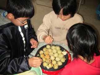 「七草たこ焼き」を作っていただき、
