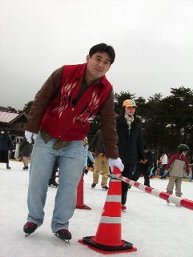 上田リーダーは野球は上手だけど、アイススケートは初めて。